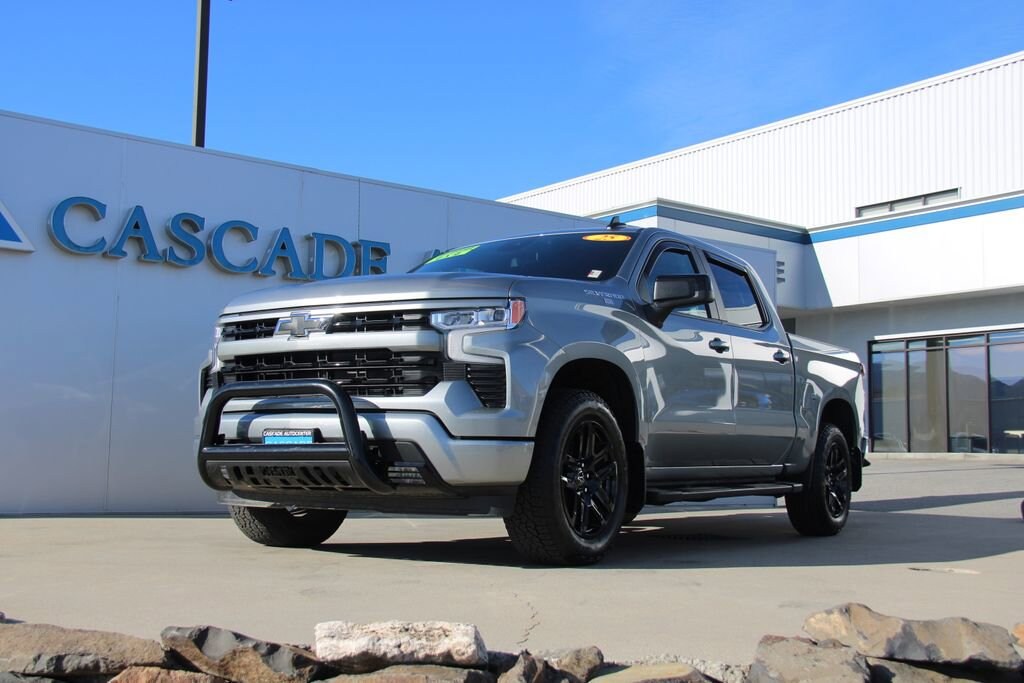 2025 Chevrolet Silverado 1500 RST RST CARFAX One-Owner.Cascade Autocenter in Wenatchee, WA is your trusted Chevrolet and Subaru dealership, proudly serving North Central Washington since 1980. Family-owned and deeply rooted in our community, weâre committed to delivering an exceptional automotive experience built on honesty, transparency, and care. Whether youâre searching for a new Chevrolet or Subaru, a Certified Pre-Owned model, or a reliable used car or truck, our experienced sales team is here to help every step of the way. Explore our online inventory, schedule a test drive, or discover flexible financing and trade-in options that make upgrading easy and affordable. If you donât see the exact vehicle you want, our CarFinder tool will notify you as soon as it arrives. Visit Cascade Autocenter in Wenatchee on North Miller Street or call (509) 663-0011 to experience why local drivers have trusted our dealership for quality vehicles, expert service, and genuine community support for more than four decades.*One Owner*, Accident Free Carfax, Alloy Wheels, Audio Package, Backup Camera, Bi Xenon Headlamp Package, Climate Package, Heat Package, Multimedia Package, Navigation System, Off Road Package, Power Mirror Package, Power Package, Premium Audio Package, Premium Wheels, Rear Climate Package, Remote Start, Security Package, Technology Package, Tow Package, Wood Trim Package, 4D Crew Cab, 2.7L I4 Turbocharged DOHC 16V LEV3-SULEV30 310hp, 8-Speed Automatic, 4WD, Sterling Gray Metallic, Jet Black w/Cloth Seat Trim, 10-Way Power Driver Seat w/Lumbar, 12.3 Multicolor Reconfigurable Digital Display, 120-Volt Bed Mounted Power Outlet, 120-Volt Interior Power Outlet, 220 Amp Alternator, 3.42 Rear Axle Ratio, 4-Wheel Disc Brakes, 40/20/40 Front Split-Bench Seat, 6 Speakers, 6-Speaker Audio System, 6 Rectangular Black Tubular Assist Steps (LPO), ABS brakes, Air Conditioning, All-Star Edition, All-Weather Floor Liner (LPO), Alloy wheels, AM/FM radio: SiriusXM with 360L, Apple CarPlay/Android Auto, Auto High-beam Headlights, Auto-Locking Rear Differential, Automatic Emergency Braking, Automatic temperature control, Bluetooth® For Phone, Brake assist, Bumpers: body-color, Chevytec Spray-On Black Bedliner, Cloth Seat Trim, Color-Keyed Carpeting Floor Covering, Compass, Convenience Package, Deep-Tinted Glass, Delay-off headlights, Driver door bin, Driver vanity mirror, Dual front impact airbags, Dual front side impact airbags, Dual Rear USB Ports (Charge Only), Dual-Zone Automatic Climate Control, Electric Rear-Window Defogger, Electronic Cruise Control, Electronic Stability Control, Emergency communication system: OnStar, EZ Lift Power Lock & Release Tailgate, Following Distance Indicator, Forward Collision Alert, Front anti-roll bar, Front Center Armrest w/Storage, Front dual zone A/C, Front fog lights, Front Frame-Mounted Black Recovery Hooks, Front LED Fog Lamps, Front License Plate Kit, Front Pedestrian Braking, Front reading lights, Front Rubberized Vinyl Floor Mats, Front wheel independent suspension, Fully automatic headlights, HD Rear Vision Camera, Heated door mirrors, Heated Driver & Front Outboard Passenger Seats, Heated front seats, Heated Power-Adjustable Outside Mirrors, Heated Steering Wheel, Heated steering wheel, High Gloss Black Mirror Caps, Hitch Guidance, Illuminated entry, Inside Rear-View Mirror w/Tilt, Integrated Trailer Brake Controller, IntelliBeam Automatic High Beam On/Off, Keyless Open & Start, Lane Keep Assist w/Lane Departure Warning, LED Cargo Area Lighting, Low tire pressure warning, Manual Tilt/Telescoping Steering Column, Molded Black Splash Guards (LPO), Navigation System, Occupant sensing airbag, OnStar Services Capable, Outside temperature display, Overhead airbag, Overhead console, Panic alarm, Passenger door bin, Passenger vanity mirror, Power door mirrors, Power driver seat, Power Front Windows w/Driver Express Up/Down, Power Front Windows w/Passenger Express Down, Power