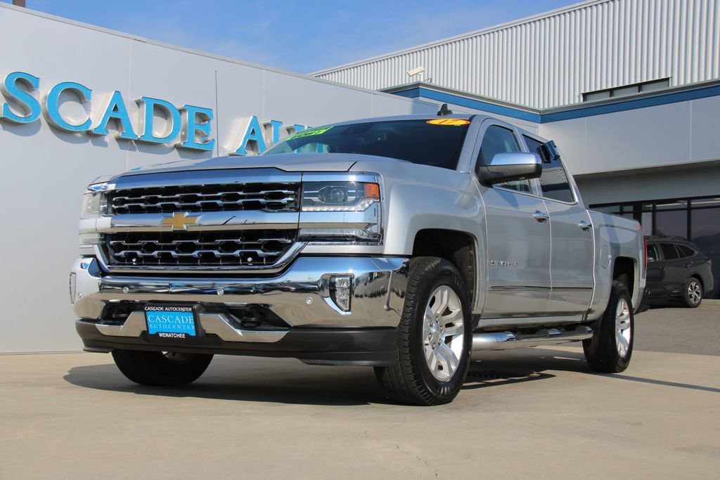 Silverado 1500 LTZ 1LZ, 4D Crew Cab, EcoTec3 5.3L V8, 6-Speed Automatic Electronic with Overdrive, 4WD, Silver Ice Metallic, Dark Ash With Jet Black Interior Accents Leather, 110-Volt AC Power Outlet, 150 Amp Alternator, 4-Wheel Disc Brakes, 4.2 Diagonal Color Display Driver Info Center, 4 Chrome Round Assist Steps (LPO), 40/20/40 Front Split Bench Seat, 6 Speaker Audio System, 6 Speakers, ABS brakes, Air Conditioning, Alloy wheels, AM/FM radio: SiriusXM, Auto-dimming door mirrors, Auto-Dimming Inside Rear-View Mirror, Auto-dimming Rear-View mirror, Automatic temperature control, Auxiliary External Transmission Oil Cooler, Bluetooth® For Phone, Bodyside moldings, Bose Speaker System, Brake assist, Bumpers: chrome, CD player, Chrome Bodyside Moldings, Chrome Cap Power-Adjustable Heated Outside Mirrors, Chrome Door Handles, Chrome Grille Surround, Chrome Mirror Caps, Color-Keyed Carpeting w/Rubberized Vinyl Floor Mats, Compass, Deep-Tinted Glass, Delay-off headlights, Driver & Front Passenger Illuminated Vanity Mirrors, Driver door bin, Driver vanity mirror, Dual front impact airbags, Dual front side impact airbags, Dual-Zone Automatic Climate Control, Electric Rear-Window Defogger, Electronic Stability Control, Emergency communication system: OnStar Guidance, Enhanced Driver Alert Package, Exterior Parking Camera Rear, EZ Lift & Lower Tailgate, Floor Mounted Console, Forward Collision Alert, Front anti-roll bar, Front Center Armrest w/Storage, Front Chrome Bumper, Front dual zone A/C, Front fog lights, Front Frame-Mounted Black Recovery Hooks, Front Full Feature Power Reclining Bucket Seats, Front License Plate Kit, Front reading lights, Front wheel independent suspension, Fully automatic headlights, Garage door transmitter, HD Radio, Heated & Vented Front Seating, Heated door mirrors, Heated Driver & Front Passenger Seats, Heated front seats, Heavy Duty Suspension, Heavy-Duty Rear Locking Differential, Illuminated entry, IntelliBeam Automatic High Beam On/Off Headlight, Lane Keep Assist, Leather Appointed Seat Trim, Leather Wrapped Heated Steering Wheel, Leather Wrapped Steering Wheel w/Cruise Controls, LED Cargo Box Lighting, LED Taillamps w/Signature, Low Speed Forward Automatic Braking, Low tire pressure warning, LTZ Plus Package, Manual Tilt/Telescoping Steering Column, Memory seat, Occupant sensing airbag, OnStar 3 Months Guidance Plan, OnStar w/4G LTE, Outside temperature display, Overhead airbag, Overhead console, Panic alarm, Passenger door bin, Passenger vanity mirror, Power Adjustable Pedals, Power door mirrors, Power driver seat, Power passenger seat, Power Sliding Rear Window, Power steering, Power windows, Power Windows w/Driver Express Up, Preferred Equipment Group 1LZ, Premium audio system: Chevrolet MyLink, Radio data system, Radio: AM/FM 8 Diagonal Clr Touch Nav, Radio: AM/FM 8 Diagonal Color Touch Screen, Rear 60/40 Folding Bench Seat (Folds Up), Rear Chrome Bumper, Rear reading lights, Rear seat cente