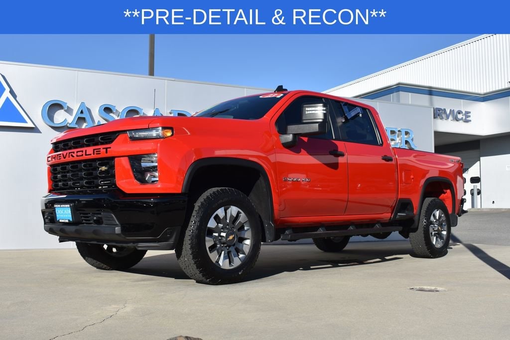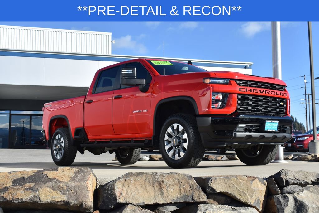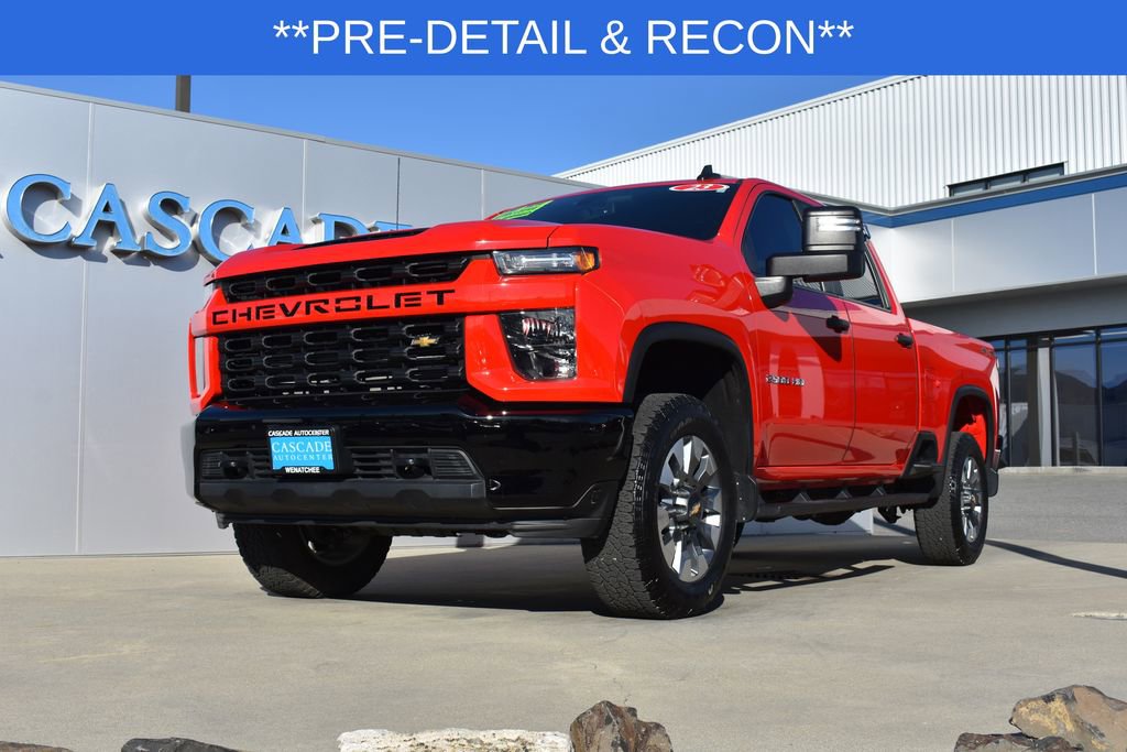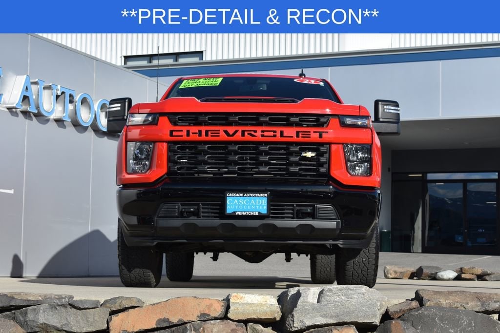 Accident Free Carfax, Alloy Wheels, Audio Package, Backup Camera, Bluetooth, Cargo Package, Heat Package, Heavy Duty Trailer Package, Silverado 2500HD Custom, 4D Crew Cab, Duramax 6.6L V8 Turbodiesel, 10-Speed Automatic, 4WD, Red Hot, Jet Black w/Cloth Seat Trim, 10-Way Power Driver Seat Adjuster w/Lumbar, 120-Volt Bed Mounted Power Outlet, 120-Volt Instrument Panel Power Outlet, 170 Amp Alternator, 2-Speed Electronic Shift Transfer Case, 220 Amp Alternator, 3 Years of Remote Access, 3.5 Diagonal Monochromatic Display DIC, 4-Wheel Disc Brakes, 6 Speakers, 6-Speaker Audio System, 720 Cold-Cranking Amps Heavy-Duty Battery, ABS brakes, Air Conditioning, All-Weather Floor Liners (LPO), Alloy wheels, AM/FM radio, Apple CarPlay/Android Auto, Auto-Dimming Inside Rear-View Mirror, Black Mirror Caps, Black Molded Splash Guards (LPO), Bluetooth® For Phone, Body Color Front Grille, Brake assist, Cloth Seat Trim, Color-Keyed Carpeting Floor Covering, Custom Convenience Package, Custom Value Package, Deep-Tinted Glass, Delay-off headlights, Driver door bin, Dual front impact airbags, Dual front side impact airbags, Electric Rear-Window Defogger, Electronic Cruise Control w/Set & Resume Speed, Electronic Stability Control, Engine Block Heater, Exhaust Brake, EZ Lift Power Lock & Release Tailgate, Front 40/20/40 Split-Bench Seats, Front anti-roll bar, Front Center Armrest w/Storage, Front License Plate Kit, Front reading lights, Front Rubberized Vinyl Floor Mats, Front wheel independent suspension, Fully automatic headlights, Heated door mirrors, Heated Vertical Trailering Mirrors, Illuminated entry, Infotainment Package, Integrated Trailer Brake Controller, LED Cargo Area Lighting, Locking Tailgate, Low tire pressure warning, Manual Tailgate Function w/No EZ Lift, Manual Tilt-Wheel Steering Column, Occupant sensing airbag, OnStar & Chevrolet Connected Services Capable, Outside temperature display, Overhead airbag, Overhead console, Panic alarm, Passenger door bin, Passenger vanity mirror, Power Door Locks, Power door mirrors, Power Front Windows w/Driver Express Up/Down, Power Front Windows w/Passenger Express Down, Power Rear Windows w/Express Down, Power steering, Power windows, Power-Adjustable Vertical Trailering Mirrors, Preferred Equipment Group 1CX, Premium audio system: Chevrolet Infotainment 3, Radio: Chevrolet Infotainment 3 System, Rear 60/40 Folding Bench Seat (Folds Up), Rear reading lights, Rear Rubberized Vinyl Floor Mats, Rear step bumper, Remote Keyless Entry, Remote keyless entry, Remote Vehicle Starter System, SiriusXM Radio, Speed control, Split folding rear seat, Standard Tailgate, Suspension Package, Tachometer, Tilt steering wheel, Traction control, Trip computer, Turn signal indicator mirrors, Variably intermittent wipers, Voltmeter, Wheels: 20 10-Spoke Machined Aluminum, Wi-Fi Hotspot Capable, Winter Grille Cover.