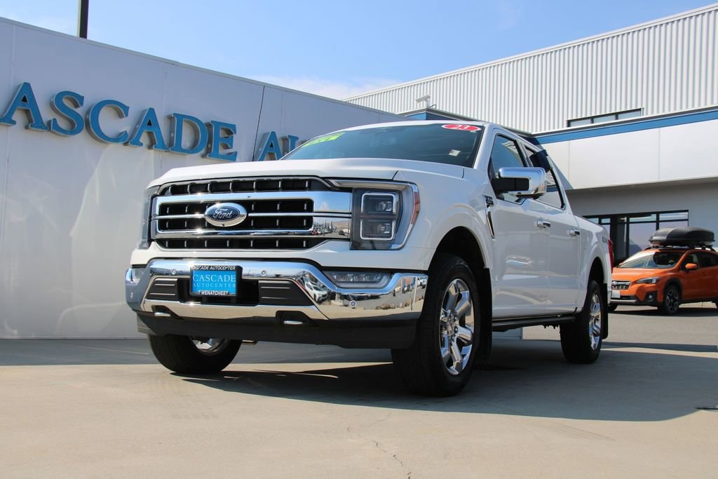 Alloy Wheels, Audio Package, Backup Camera, Bi Xenon Headlamp Package, Bluetooth, Cargo Package, Climate Package, Heat Package, Heavy Duty Trailer Package, Leather Seats, Memory Package, Multimedia Package, Navigation System, Off Road Package, Performance Handling Package, Power Mirror Package, Power Package, Premium Audio Package, Premium Wheels, Rear Climate Package, Remote Start, Safety Package, Security Package, Sunroof/Moonroof, Technology Package, Tow Package, Wood Trim Package, F-150 Lariat, 4D SuperCrew, 2.7L V6 EcoBoost, 10-Speed Automatic, 4WD, Star White Metallic Tri-Coat, Black w/Leather Trim Seats w/Heated 2nd Row, 2nd Row Heated Seats, 3.55 Axle Ratio, 4-Wheel Disc Brakes, 8 Speakers, ABS brakes, Adjustable pedals, Air Conditioning, Alloy wheels, AM/FM radio: SiriusXM with 360L, Auto High-beam Headlights, Auto-dimming door mirrors, Auto-dimming Rear-View mirror, Automatic temperature control, Brake assist, Bumpers: chrome, Chrome wheels, Class IV Trailer Hitch Receiver, Compass, Delay-off headlights, Driver door bin, Driver vanity mirror, Dual front impact airbags, Dual front side impact airbags, Electronic Stability Control, Emergency communication system: SYNC 4 911 Assist, Equipment Group 502A High, Exterior Parking Camera Rear, Ford Co-Pilot360 Assist 2.0, Front anti-roll bar, Front Bucket Seats, Front Center Armrest, Front dual zone A/C, Front fog lights, Front reading lights, Front wheel independent suspension, Fully automatic headlights, Garage door transmitter, GVWR: 6,600 lbs Payload Package, Heated door mirrors, Heated front seats, Heated steering wheel, Illuminated entry, LED Projector w/Dynamic Bending Headlamps, Low tire pressure warning, Memory seat, Navigation system: Connected Navigation, Occupant sensing airbag, Outside temperature display, Overhead airbag, Overhead console, Panic alarm, Passenger door bin, Passenger vanity mirror, Pedal memory, Power door mirrors, Power driver seat, Power passenger seat, Power steering, Power Tilt/Telescoping Steering Column w/Memory, Power windows, Power-Deployable Running Boards, Radio data system, Radio: B&O Sound System by Bang & Olufsen, Rain-Sensing Wipers, Rear reading lights, Rear seat center armrest, Rear step bumper, Rear window defroster, Remote keyless entry, Security system, Speed control, Speed-sensing steering, Split folding rear seat, Steering wheel mounted audio controls, SYNC 4 w/Enhanced Voice Recognition, Tachometer, Telescoping steering wheel, Tilt steering wheel, Traction control, Trip computer, Turn signal indicator mirrors, Twin Panel Moonroof, Variably intermittent wipers, Ventilated front seats, Voltmeter, Wheels: 18 Chrome-Like PVD, Wheels: 20 Chrome-Like PVD, Wireless Charging Pad.