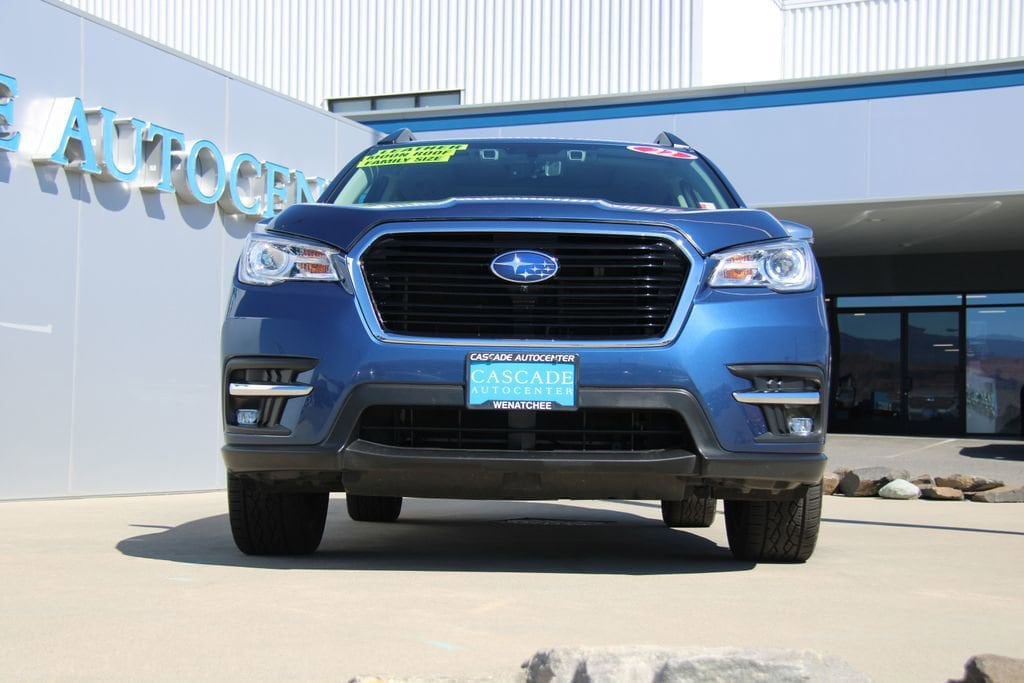 Accident Free Carfax, Alloy Wheels, Audio Package, Backup Camera, Bi Xenon Headlamp Package, Bluetooth, Cargo Package, Climate Package, Leather Seats, Light Package, Multimedia Package, Navigation System, Performance Handling Package, Power Mirror Package, Power Package, Premium Audio Package, Premium Wheels, Rear Climate Package, Remote Start, Safety Package, Security Package, Sunroof/Moonroof, Technology Package, Wood Trim Package, Ascent Touring, 4D Sport Utility, 2.4L 4-Cylinder DOHC 16V, Lineartronic CVT, AWD, Abyss Blue Pearl, Slate Black w/Perforated Leather-Trimmed Upholstery, 14 Speakers, 3rd row seats: bench, 4-Wheel Disc Brakes, ABS brakes, Air Conditioning, Alloy wheels, AM/FM radio: SiriusXM, Auto High-beam Headlights, Auto-dimming Rear-View mirror, Automatic temperature control, Axle Ratio: 4.44, Brake assist, Bumpers: body-color, CD player, Compass, Delay-off headlights, Driver door bin, Driver vanity mirror, Dual front impact airbags, Dual front side impact airbags, Electronic Stability Control, Emergency communication system: STARLINK Safety and Security (Subscription Required), Exterior Parking Camera Rear, Four wheel independent suspension, Front anti-roll bar, Front Bucket Seats, Front Center Armrest, Front dual zone A/C, Front fog lights, Front reading lights, Fully automatic headlights, Garage door transmitter: HomeLink, harman/kardon® Speakers, Heated & Ventilated Front Bucket Seats, Heated door mirrors, Heated front seats, Heated rear seats, Heated steering wheel, Illuminated entry, Knee airbag, Low tire pressure warning, Memory seat, Navigation System, Occupant sensing airbag, Outside temperature display, Overhead airbag, Overhead console, Panic alarm, Passenger door bin, Passenger vanity mirror, Perforated Leather-Trimmed Upholstery, Power door mirrors, Power driver seat, Power Liftgate, Power moonroof, Power passenger seat, Power steering, Power windows, Radio data system, Radio: Subaru STARLINK 8.0 Multimedia Nav System, Rain sensing wipers, Rear air conditioning, Rear anti-roll bar, Rear reading lights, Rear window defroster, Rear window wiper, Reclining 3rd row seat, Remote keyless entry, Security system, Speed control, Split folding rear seat, Spoiler, STARLINK/Apple CarPlay/Android Auto, Steering wheel mounted audio controls, Tachometer, Telescoping steering wheel, Tilt steering wheel, Traction control, Trip computer, Turn signal indicator mirrors, Variably intermittent wipers, Ventilated front seats, Wheels: 20 x 7.5 J Dk Gray Alloy w/Machine Finish.