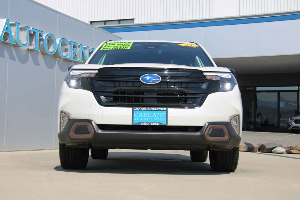 *One Owner*, Accident Free Carfax, Alloy Wheels, Audio Package, Backup Camera, Bi Xenon Headlamp Package, Bluetooth, Cargo Package, Climate Package, Multimedia Package, Off Road Package, Performance Handling Package, Power Mirror Package, Power Package, Premium Audio Package, Premium Wheels, Rear Climate Package, Safety Package, Forester Sport, 4D Sport Utility, 2.5L 4-Cylinder DOHC 16V, Lineartronic CVT, AWD, Crystal White Pearl, Black w/Premium Textured Cloth Upholstery, 4-Wheel Disc Brakes, 6 Speakers, ABS brakes, Air Conditioning, AM/FM radio: SiriusXM with 360L, Anti-whiplash front head restraints, Auto High-beam Headlights, Automatic temperature control, Brake assist, Bumpers: body-color, Driver door bin, Driver vanity mirror, Dual front impact airbags, Dual front side impact airbags, Electronic Stability Control, Exterior Parking Camera Rear, Four wheel independent suspension, Front anti-roll bar, Front Bucket Seats, Front Center Armrest, Front dual zone A/C, Front fog lights, Front reading lights, Fully automatic headlights, Heated door mirrors, Heated Front Bucket Seats, Heated front seats, Illuminated entry, Knee airbag, Leather steering wheel, Low tire pressure warning, Occupant sensing airbag, Outside temperature display, Overhead airbag, Overhead console, Panic alarm, Passenger door bin, Passenger vanity mirror, Power door mirrors, Power driver seat, Power moonroof: Panoramic, Power steering, Power windows, Radio data system, Rear anti-roll bar, Rear seat center armrest, Rear window defroster, Rear window wiper, Remote keyless entry, Security system, Speed control, Speed-sensing steering, Split folding rear seat, Spoiler, Sport StarTex Upholstery, Steering wheel mounted audio controls, Tachometer, Telescoping steering wheel, Tilt steering wheel, Traction control, Trip computer, Turn signal indicator mirrors, Variably intermittent wipers, Wheels: 19 x 7.5 J Bronze Finish Aluminum-Alloy.