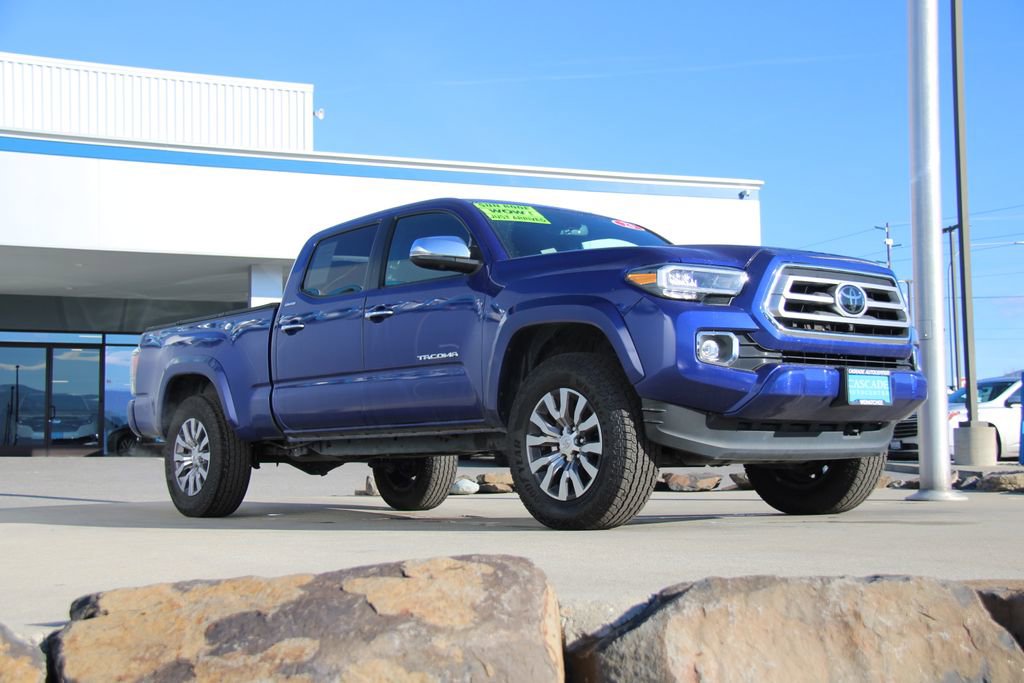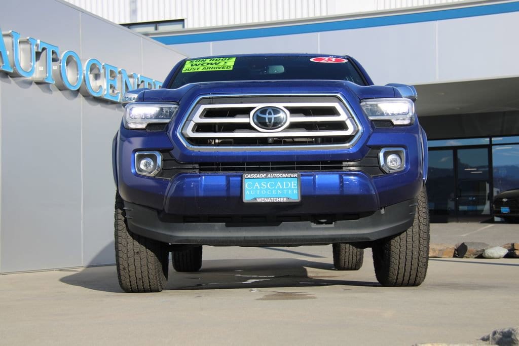 *One Owner*, Accident Free Carfax, Alloy Wheels, Audio Package, Backup Camera, Bi Xenon Headlamp Package, Bluetooth, Cargo Package, Chrome Wheels, Climate Package, Heat Package, Heavy Duty Trailer Package, Leather Seats, Light Package, Limited Package, Multimedia Package, Navigation System, Performance Handling Package, Power Mirror Package, Power Package, Premium Audio Package, Premium Wheels, Rear Climate Package, Remote Start, Safety Package, Security Package, Sunroof/Moonroof, Technology Package, Tow Package, Wood Trim Package, Tacoma Limited V6, 4D Double Cab, 3.5L V6 PDI DOHC 24V LEV3-ULEV70 278hp, 6-Speed Automatic, 4WD, Blue Crush Metallic, Black w/Leather Seat Trim, ABS brakes, Air Conditioning, AM/FM radio: SiriusXM, Anti-whiplash front head restraints, Apple CarPlay/Android Auto, Auto High-beam Headlights, Auto-dimming Rear-View mirror, Automatic temperature control, Axle Ratio: 3.91, Brake assist, Bumpers: body-color, Driver door bin, Dual front impact airbags, Dual front side impact airbags, Electronic Stability Control, Emergency communication system: Safety Connect (1-year trial), Front anti-roll bar, Front Bucket Seats, Front Center Armrest, Front dual zone A/C, Front fog lights, Front reading lights, Front Seats, Front wheel independent suspension, Heated door mirrors, Illuminated entry, Knee airbag, Low tire pressure warning, Navigation System, Occupant sensing airbag, Outside temperature display, Overhead airbag, Overhead console, Panic alarm, Passenger door bin, Power door mirrors, Power driver seat, Power steering, Power windows, Rear step bumper, Remote keyless entry, Speed control, Speed-sensing steering, Split folding rear seat, Steering wheel mounted audio controls, Tachometer, Telescoping steering wheel, Tilt steering wheel, Traction control, Trip computer, Variably intermittent wipers.