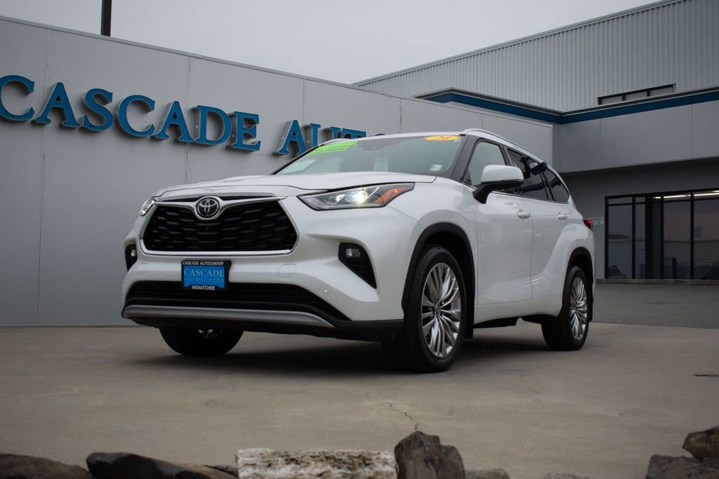 *One Owner*, Accident Free Carfax, Alloy Wheels, Bi Xenon Headlamp Package, Cargo Package, Heat Package, Leather Seats, Light Package, Memory Package, Multimedia Package, Navigation System, Performance Handling Package, Power Mirror Package, Power Package, Premium Audio Package, Premium Wheels, Rear Climate Package, Remote Start, Safety Package, Security Package, Sunroof/Moonroof, Technology Package, Wood Trim Package, Highlander Platinum, 4D Sport Utility, 2.4L I4 PDI Turbocharged DOHC 16V LEV3-SULEV30 265hp, 8-Speed Automatic, AWD, Wind Chill Pearl, Harvest Beige w/Leather Seat Trim, 11 Speakers, 20 Painted Alloy Wheels, 3.329 Axle Ratio, 3rd row seats: split-bench, 4-Wheel Disc Brakes, ABS brakes, Active Cruise Control, Air Conditioning, Alloy wheels, AM/FM radio: SiriusXM, Apple CarPlay/Android Auto, Auto High-beam Headlights, Auto-dimming Rear-View mirror, Automatic temperature control, Brake assist, Bumpers: body-color, Delay-off headlights, Digital Rearview Mirror w/HomeLink, Driver door bin, Driver vanity mirror, Dual front impact airbags, Dual front side impact airbags, Electronic Stability Control, Emergency communication system: Safety Connect (up to 10-year trial subscription), Exterior Parking Camera Rear, Four wheel independent suspension, Front anti-roll bar, Front Bucket Seats, Front Center Armrest, Front dual zone A/C, Front fog lights, Front reading lights, Fully automatic headlights, Garage door transmitter: HomeLink, Heads-Up Display, Heated door mirrors, Heated front seats, Heated rear seats, Heated steering wheel, Heated/Ventilated Front Bucket Seats, High Grade LED Projector Headlights, Illuminated entry, Knee airbag, Leather Seat Trim, Leather Shift Knob, Leather steering wheel, Low tire pressure warning, Memory seat, Navigation System, Navigation system: Drive Connect Cloud Navigation (1-year trial subscription), Occupant sensing airbag, Outside temperature display, Overhead airbag, Overhead console, Panic alarm, Panoramic Moonroof, Panoramic View Monitor, Passenger door bin, Passenger vanity mirror, Power door mirrors, Power driver seat, Power Liftgate, Power moonroof, Power passenger seat, Power steering, Power windows, Radio: 12.3 Toyota Audio Multimedia w/JBL Premium, Rain sensing wipers, Rear air conditioning, Rear anti-roll bar, Rear reading lights, Rear window defroster, Rear window wiper, Reclining 3rd row seat, Remote keyless entry, Security system, Speed control, Speed-sensing steering, Split folding rear seat, Spoiler, Steering wheel mounted audio controls, Tachometer, Telescoping steering wheel, Tilt steering wheel, Traction control, Trip computer, Turn signal indicator mirrors, Variably intermittent wipers, Ventilated front seats.