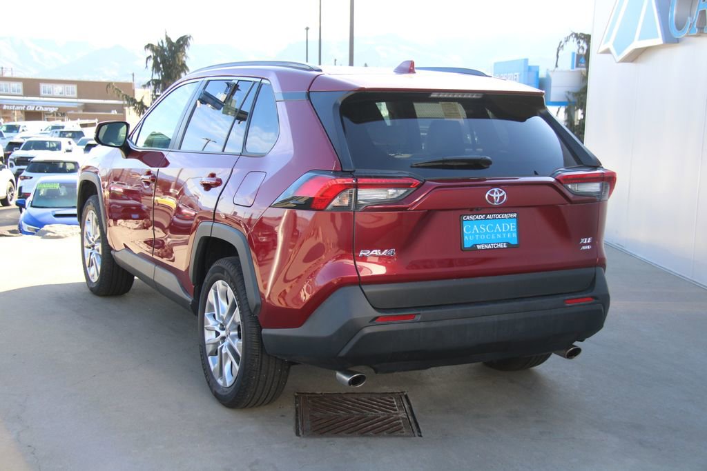*One Owner*, Accident Free Carfax, Alloy Wheels, Audio Package, Backup Camera, Bluetooth, Cargo Package, Heat Package, Light Package, Multimedia Package, Performance Handling Package, Power Mirror Package, Power Package, Premium Audio Package, Premium Wheels, Rear Climate Package, Safety Package, Security Package, RAV4 XLE Premium, 4D Sport Utility, 2.5L 4-Cylinder DOHC Dual VVT-i, 8-Speed Automatic, AWD, Ruby Flare Pearl, Ash w/Fabric Seat Trim, 3 Spoke Leather Steering Wheel, 4-Wheel Disc Brakes, 6 Speakers, ABS brakes, Air Conditioning, Alloy wheels, AM/FM radio: SiriusXM, Auto High-beam Headlights, Automatic temperature control, Brake assist, Bumpers: body-color, Delay-off headlights, Driver door bin, Driver vanity mirror, Dual front impact airbags, Dual front side impact airbags, Electronic Stability Control, Emergency communication system: Safety Connect (10-year trial), Exterior Parking Camera Rear, Four wheel independent suspension, Front anti-roll bar, Front Bucket Seats, Front Center Armrest, Front dual zone A/C, Front reading lights, Fully automatic headlights, Heated door mirrors, Illuminated entry, Knee airbag, Leather Shift Knob, Leather steering wheel, Low tire pressure warning, Occupant sensing airbag, Outside temperature display, Overhead airbag, Overhead console, Panic alarm, Passenger door bin, Passenger vanity mirror, Power door mirrors, Power driver seat, Power Liftgate, Power moonroof, Power steering, Power windows, Radio data system, Radio: AM/FM/XM Audio System, Rear anti-roll bar, Rear seat center armrest, Rear window defroster, Rear window wiper, Remote keyless entry, SofTex Seat Trim, Speed control, Speed-sensing steering, Split folding rear seat, Spoiler, Steering wheel mounted audio controls, Tachometer, Telescoping steering wheel, Tilt steering wheel, Traction control, Trip computer, Turn signal indicator mirrors, Variably intermittent wipers, Wheels: 19 5-Spoke Silver Alloy.