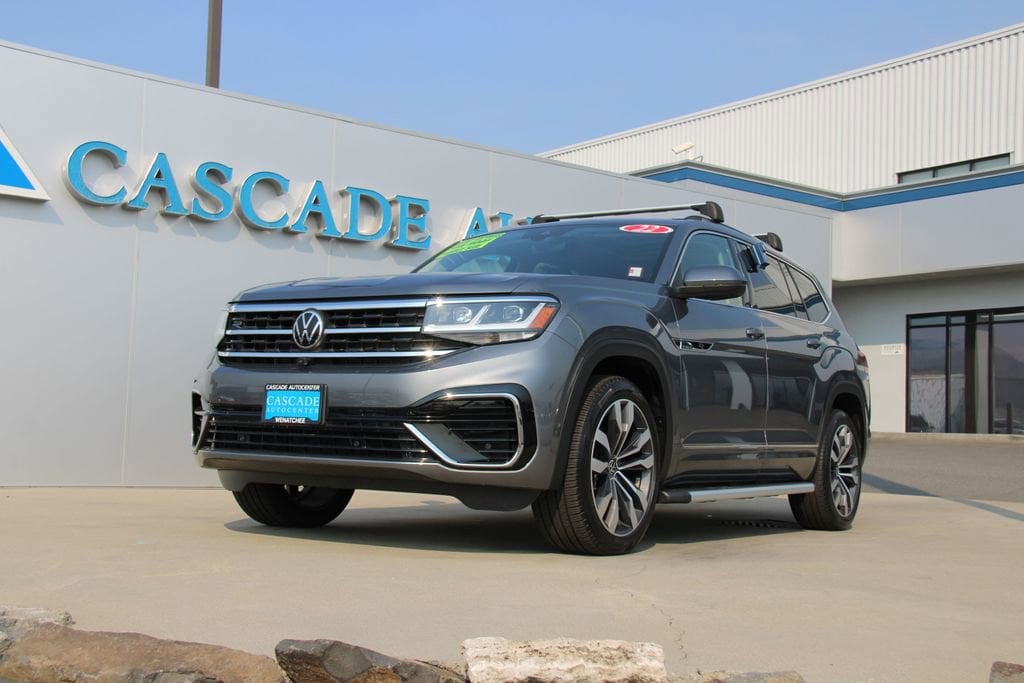 *One Owner*, Alloy Wheels, Audio Package, Backup Camera, Bi Xenon Headlamp Package, Bluetooth, Cargo Package, Climate Package, Heat Package, Leather Seats, Memory Package, Multimedia Package, Off Road Package, Performance Handling Package, Power Mirror Package, Power Package, Premium Audio Package, Premium Wheels, Rear Climate Package, Safety Package, Security Package, Sunroof/Moonroof, Wood Trim Package, Atlas 3.6L V6 SEL Premium R-Line, 4D Sport Utility, 3.6L VR6, 8-Speed Automatic with Tiptronic, AWD, Pyrite Silver Metallic, Titan Black w/Perforated V-Tex Leatherette Seating Surfaces, 12 Speakers, 3.60 Axle Ratio, 3rd row seats: split-bench, 4-Wheel Disc Brakes, ABS brakes, Air Conditioning, Alloy wheels, AM/FM radio: SiriusXM with 360L, Auto High-beam Headlights, Auto-dimming Rear-View mirror, Automatic temperature control, Brake assist, Bumpers: body-color, Compass, Delay-off headlights, Driver door bin, Driver vanity mirror, Dual front impact airbags, Dual front side impact airbags, Electronic Stability Control, Emergency communication system, Four wheel independent suspension, Front anti-roll bar, Front Bucket Seats, Front Center Armrest, Front dual zone A/C, Front fog lights, Front reading lights, Fully automatic headlights, Heated door mirrors, Heated front seats, Heated rear seats, Heated steering wheel, Htd/Actively Ventilated Comfort Front Sport Seats, Illuminated entry, Leather Shift Knob, Low tire pressure warning, Memory seat, Navigation System, Occupant sensing airbag, Outside temperature display, Overhead airbag, Overhead console, Panic alarm, Passenger door bin, Passenger vanity mirror, Perforated Vienna Leather Seating Surfaces, Power door mirrors, Power driver seat, Power Liftgate, Power moonroof: Panoramic, Power passenger seat, Power steering, Power windows, Radio data system, Radio: MIB3 Discover Media w/8 Touchscreen Nav, Rain sensing wipers, Rear air conditioning, Rear anti-roll bar, Rear audio controls, Rear reading lights, Rear seat center armrest, Rear window defroster, Rear window wiper, Remote keyless entry, Roof rack: rails only, Security system, Speed control, Speed-sensing steering, Split folding rear seat, Spoiler, Sport steering wheel, Standard Suspension, Steering wheel mounted audio controls, Tachometer, Telescoping steering wheel, Tilt steering wheel, Traction control, Trip computer, Turn signal indicator mirrors, Variably intermittent wipers, Ventilated front seats, Wheels: 21 2-Tone Machined Alloy.